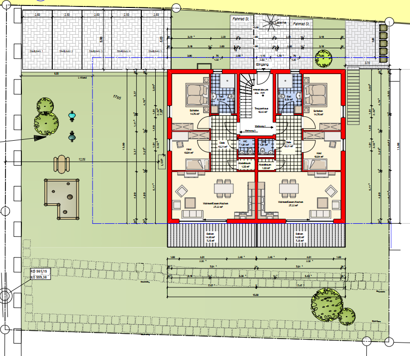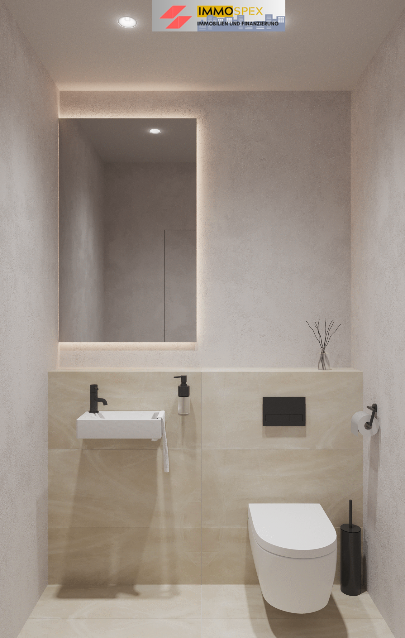 Moderne hochmoderne 3-Zimmer-Wohnung überzeugt durch ihr durchdachtes Wohnkonzept und bietet ausreichend Platz für ein Paar oder Familie mit einem Kind. Im Eingangsbereich finden Sie eine große Diele mit genügend Platz für Ihre Wandschränke oder Garderobe. Von hier aus gelangen Sie zum Elternschlafzimmer, Kinderzimmer sowie zum großen Wohnbereich mit offener Küche und großen Panoramafenstern mit Zugang zum großzügigen Balkon mit Blick ins Grüne. Das Badezimmer mit Tageslicht verfügt über eine bodenebene Dusche, Waschbecken und Waschmaschinenplatz. Die Toilette mit Waschbecken ist separat. Zuletzt gibt es eine praktische Abstellkammer für Ihre Vorräte. Modernes Bad mit begehbarer Dusche, barrierefrei, Außenstellplatz, Fahrradstellplätze, Keller, Isolierverglasung, Abstellraum, Fußbodenheizung, Massivbauweise, Videosprechanlage, elektrische Rollläden. Provisionsfrei, direkt vom Bauträger, KfW-Förderung. Auf Wunsch bieten wir Ihnen gerne eine passende Finanzierung an.